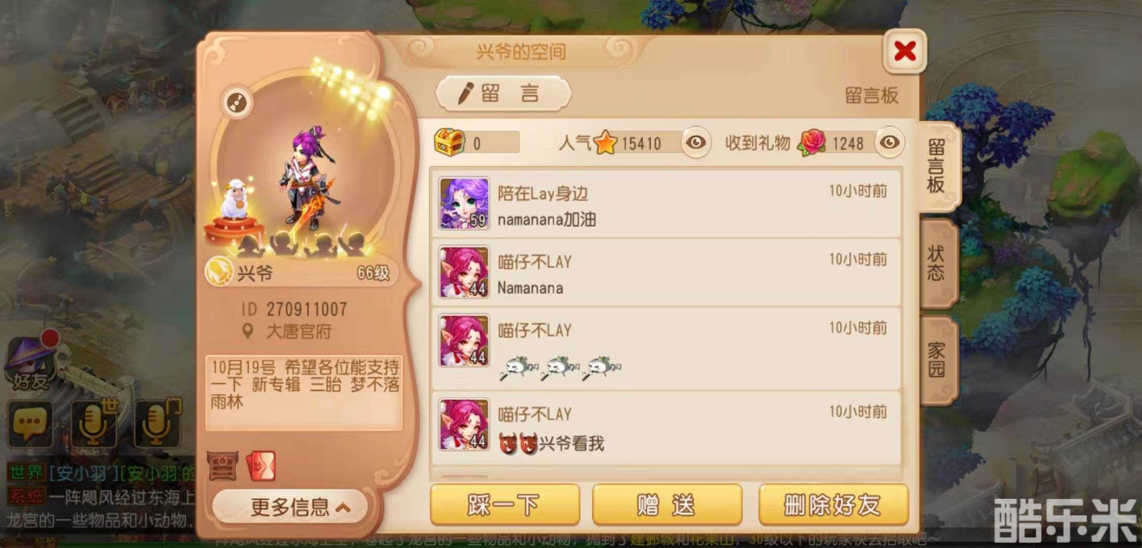 同时,作为一名曾参加过梦幻西游顶级联赛的忠实玩家,张艺兴在代言《梦幻西游》手游后,更是活跃在其新专辑同名新服【梦不落雨林】,与玩家们一起并肩作战。在游戏中名为“兴爷”的他,等级已迅速达到66级,并担任了副帮主。