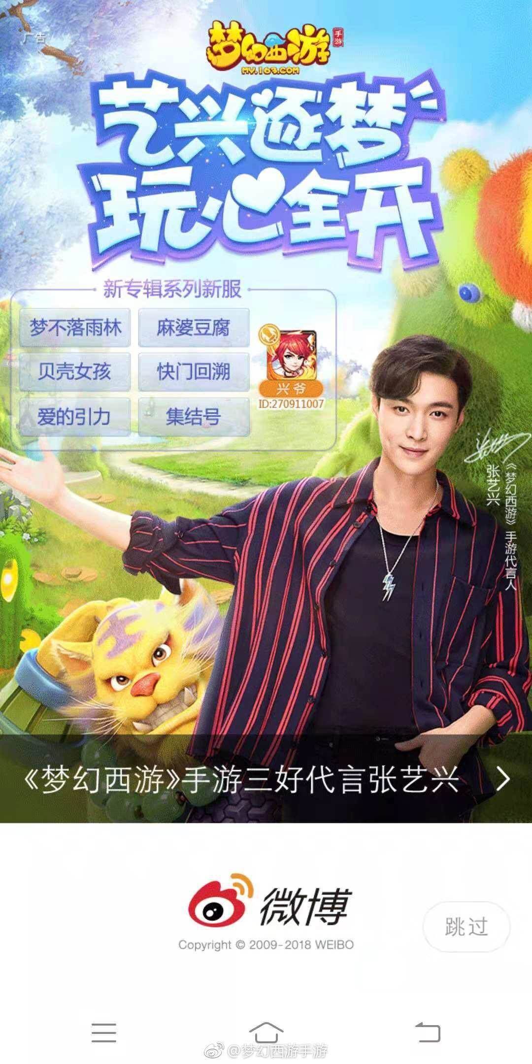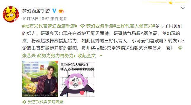 霸屏时刻 《梦幻西游》手游三好代言人张艺兴喜提微博开屏