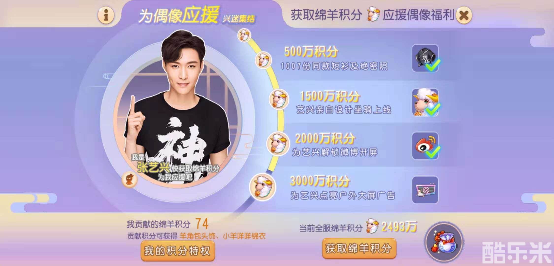 张艺兴的粉丝们不仅传递着他的正能量,也为艺兴献上了热情给力的应援。不仅陪伴“兴爷”一同征战三界,更是在《梦幻西游》手游的专属应援玩法“绵羊班”中,短时间内连连突破绵羊积分各大关卡,解锁了多重应援福利。