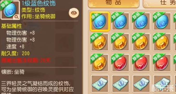 梦幻西游手游纹饰就是给坐骑用的,坐骑统御着宠物,镶嵌了纹饰就能给宠物加属性。这些属性直接反映在宠物的面板上,让它们在战斗里更猛更扛揍。纹饰分蓝色、红色、黄色三大类,每种颜色提供的属性方向不一样。如果我们给坐骑镶嵌上三个纹饰,还能激活坐骑技能,这可是能让宠物拥有额外战斗本领的好东西。下面和酷乐米小编一起来看看吧