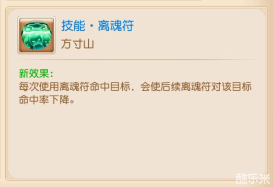 新效果:每次使用离魂符命中目标,会使后续离魂符该目标的命中率下降