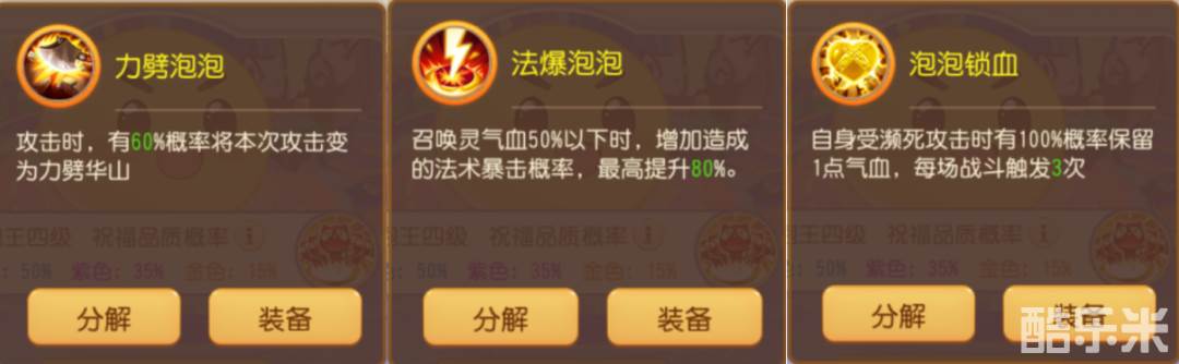 这三个强力增益装备之后可大幅提升泡泡战斗力,建议少侠们优先使用哦~
