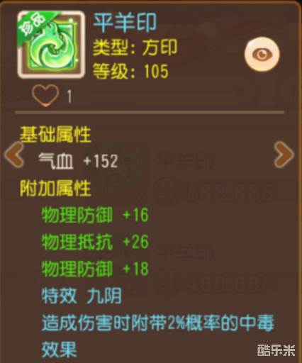 这时不妨选用能造成“固定伤害”的星印特效,变相提高自身总输出。“九阴”特效就相当不错,非常适合攻击目标多、打击面广的法系门派,群体法术所攻击的每个目标都有概率附加毒状态,每回合持续消耗目标气血和魔法值,兼顾持续伤害与打蓝消耗。此外,这枚羊印能提供高额物防、物理抵抗属性,提高法系生存能力。